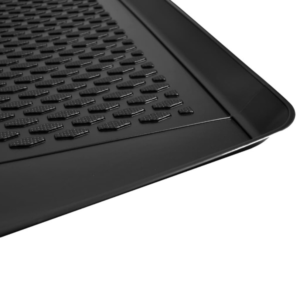 Matte besteht aus langlebigem Gummi und ist sowohl rutsch- und reissfest als auch wasserabweisend und pflegeleicht. Die erhöhten Kanten der Matte verhindern das Auslaufen von Flüssigkeiten und schützen die Innenseite des Kofferraums und den