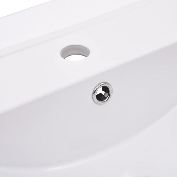 Gästetoilette. Das Waschbecken erfüllt sowohl eine praktische als auch ästhtetische Funktion. Dank seines modernen Designs passt dieses Waschbecken definitiv zu jedem Einrichtungsstil. Die Keramikspüle ist sehr leicht zu reinigen. Der Überlauf verhindert das Überlaufen von Wasser. Zusätzlich bringt seine glasierte Oberfläche ein modernes und zugleich elegantes Design mit sich. Bitte beachten Sie, dass der Wasserhahn und die Armatur nicht im Lieferumfang enthalten sind.