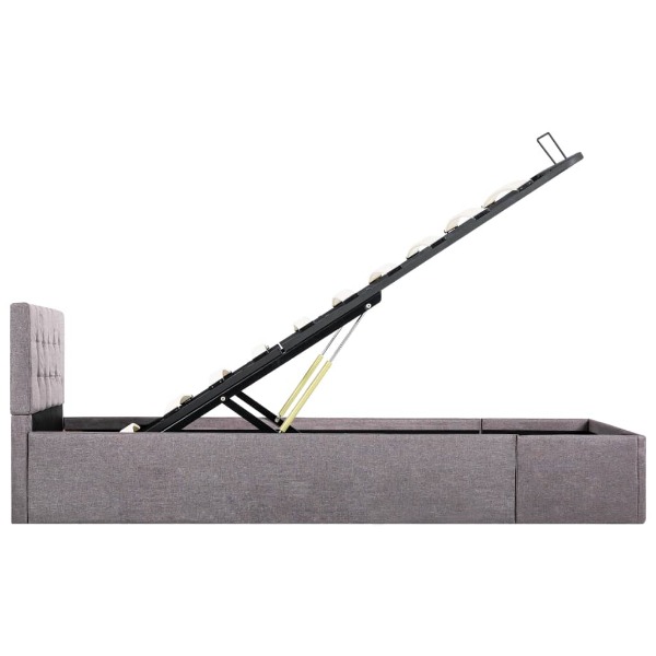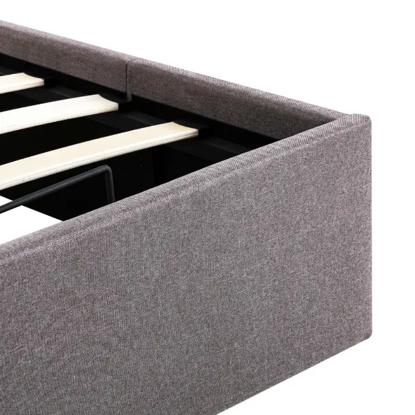 Lattenrost steht nach dem Anheben aufrecht, sodass Sie beide Hände frei haben, um darunter liegende Gegenstände zu entfernen oder zu verstauen. Der pulverbeschichtete Stahlrahmen und die Sperrholzlatten tragen zur Robustheit und Langlebigkeit des Bettes bei. Das mit strapazierfähigem Stoff gepolsterte Stauraumnbett wirkt einladend und ist pflegeleicht. Dieser Artikel ist leicht zu montieren. Dieses