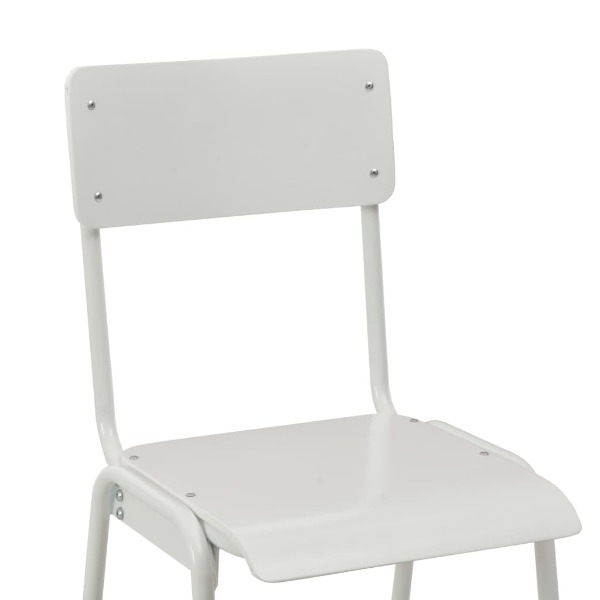 Tuch zu reinigen) sind. Die pulverbeschichteten Stahlbeine verleihen den Stühlen zusätzliche Stabilität. Darüber hinaus können die Stühle gestapelt werden, um bei Nichtgebrauch