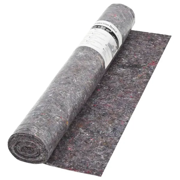 Vliesstoff mit farbigen Fasern und hat auf der Rückseite eine PE-Folienbeschichtung, die es vollständig wasserabweisend macht. Die Abdeckplane hat eine rutschfeste Unterseite.