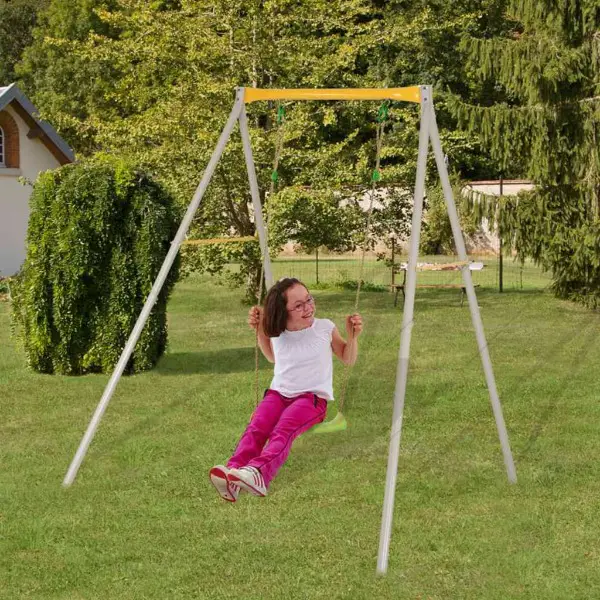 TRIGANO wird zum Lieblingstreffpunkt Ihrer Kinder! Mit dem Stahlrahmen und dem stabilen Kunststoffsitz ist dieses Schaukel-Set extrem robust, witterungsbeständig, langlebig und einfach zu montieren. Die Schaukel wird mit Metallhaken am Rahmen befestigt. Dieses