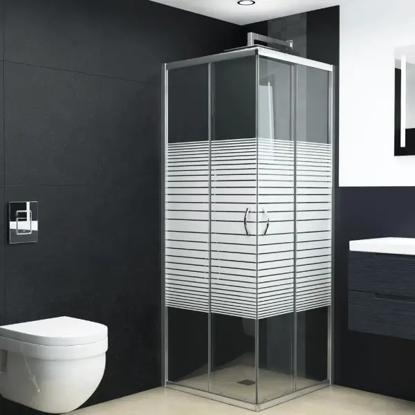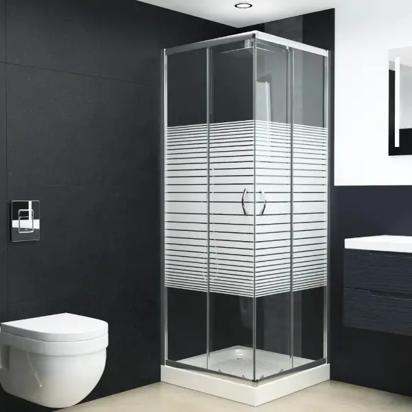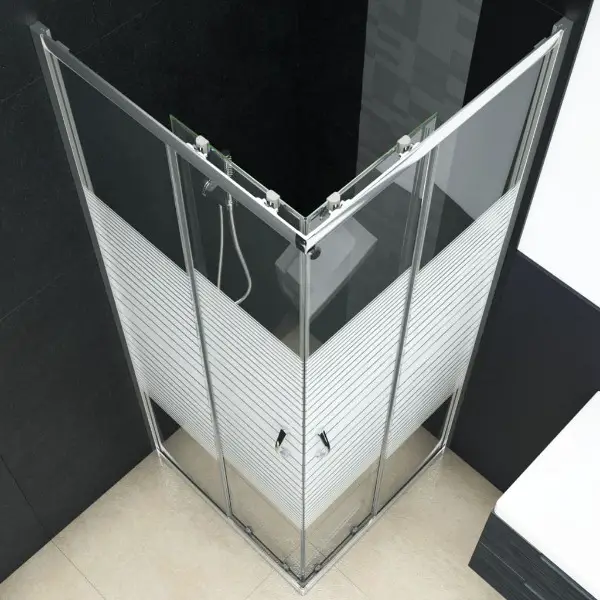 Badezimmer. Die Streifenabdrücke auf den Paneelen schützen Ihre Privatsphäre. Darüber hinaus ist die Duschabtrennung mit Schiebetüren versehen, die für einen einfachen Zugang sorgen. Die Montage lässt sich mit den mitgelieferten Montagematerialien einfach durchführen. Bitte beachten Sie, dass die Duschwanne nicht im Lieferumfang enthalten ist.