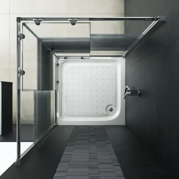 Unsere Duschkabine vereint Stil und Funktionalität und passt perfekt zu Ihrem Badedekor. Der matt verchromte Rahmen, die Seitenpaneele aus