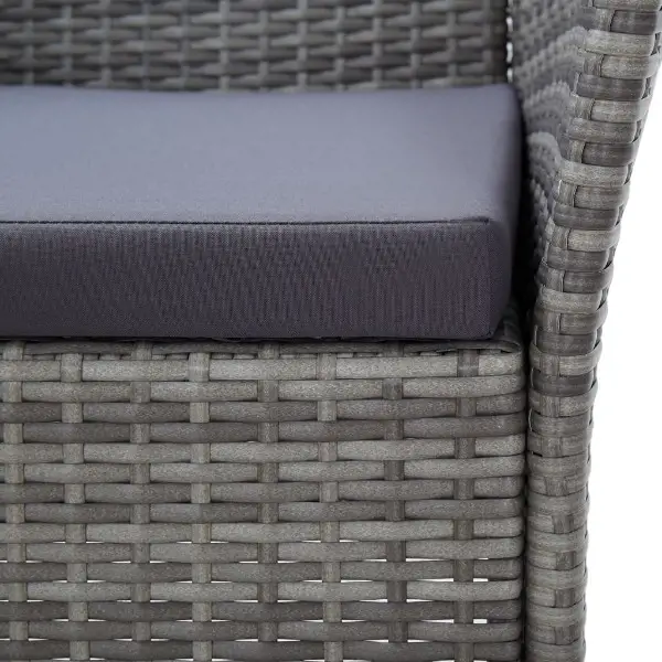 Garten oder auf der Terrasse sein! Dank des wasserabweisenden PE-Rattans ist die Essgruppe leicht zu reinigen, strapazierfähig und für den täglichen Ausseneinsatz geeignet. Die pulverbeschichteten Stahlrahmen sorgen für Stabilität und hervorragende Langlebigkeit. Die Lieferung umfasst auch einen