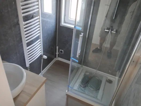 Dusche, Kühl-Gefrierkombination, Gartentür,