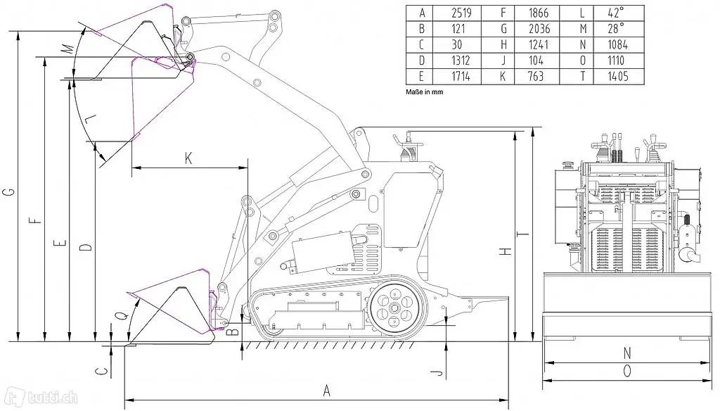 Länge mit Schaufel: 2519mm